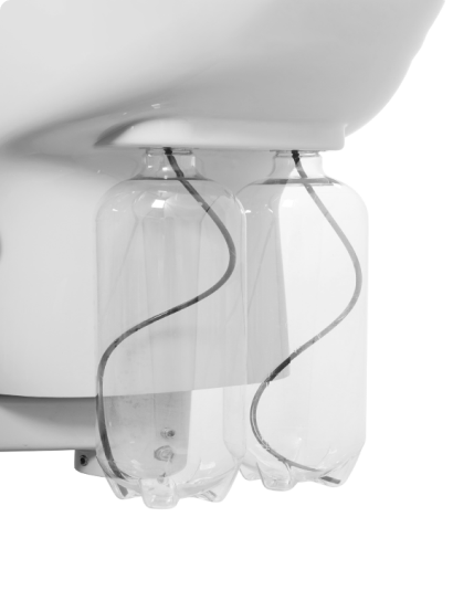 Две бутылки для подачи воды и дезинфектанта облегчают работу обслуживающего персонала. Можно использовать для дезинфекции всего трубопровода и внутреннего контура шлангов блока врача и ассистента.